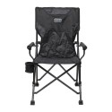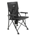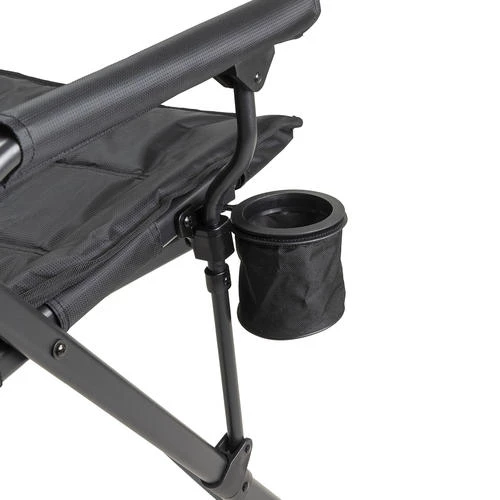 Stolen har en solid sort stålramme med kontrastfargede detaljer, og er trukket i slitesterk 600D polyester med 420D ripstop-paneler og hel polstring for ekstra komfort. De polstrede armlenene gjør stolen behagelig selv ved lang bruk, mens den praktiske svingbare kopp-holderen og en bakre nettlomme sørger for enkel oppbevaring av det viktigste.