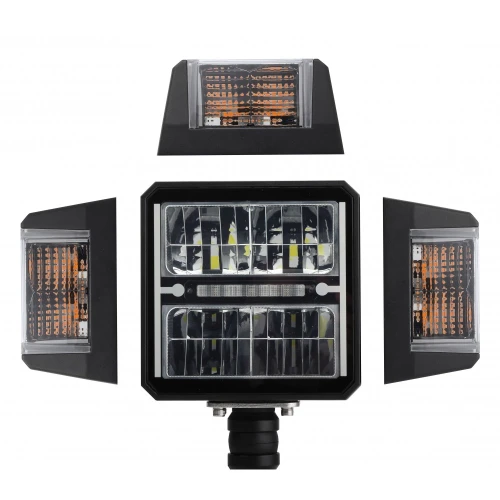Leveres med blinklys som kan festes på sidene eller i overkant på lampen. Leveres med 6-pin DT-kontakt bak, motpart følger med. Hovedlykten er designet for både høyre og venstre side. Dim:150mm x 150mm (215mm med blinklys), dybde 85mm. Høyde til brakett 176mm. Kelvin: 5700. Nærlys 1800LM, 1500 effektive LM. 1 lux 163m. 12V/1,7Amp. Fjernlys 3600LM, 2900 effektive LM.1 lux. 280m. 12V/3,8 Amp. ref. 17,5. ECE R112/R6, R10, DOT, CE, RoHS. IP68.