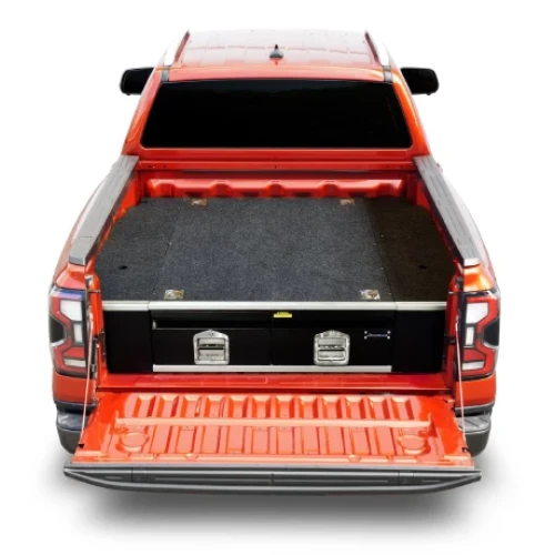 Har du en pickup og ønsker bedre orden på småting du har med deg bak på planet har vi løsningen til deg. Hold lasten til din organisert og tilgjengelig med et sett med AEROKLAS skuffer. AEROKLAS skuffer er lette, men likevel sterke takket være deres galvaniserte stålchassis som er ferdig med glassfylte polypropylen topppaneler og vingesett (sidepaneler). Sidepanelene kan løftes opp og man har da et praktisk ekstra oppbevaringsrom på hver side av skuffeseksjonen. AEROKLAS skuffer bruker et fullstendig forseglet skinnesystem for å sikre at de fungerer pålitelig og skranglefri gang på gang, enten du er på arbeidsplassen, på veien eller i leiren. Hvert systems topppanel og skuffeinteriør er også dekket av slitesterkt marinekvalitets teppe, som møtes av en beskyttende toppkant i aluminium for ekstra holdbarhet. På skuffene er det kraftige låser i rustfritt stål med "slam-shut"-funksjonalitet, som er integrert i en robust svart pulverlakkert fasade. Med en lett konstruksjon, pålitelig funksjonalitet og en rekke bruksområder for kjøretøy med to førerhus, er Aeroklas-skuffer en robust oppbevaringsløsning for din 4x4.